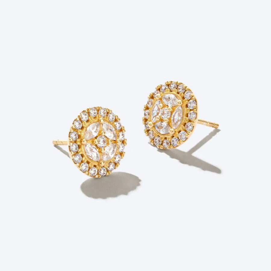 The Éclat Earrings live up to their name - catching light with every movement, they embody refined elegance. Each piece features a mix of marquise and round cut zirconia stones, set in warm 24K gold vermeil to give them a brillance that catches the eye. We love these little stud statement earrings, because they have the power to elevate just about any outfit. Make sure to wear them if you're ready to collect daily compliments on your look.