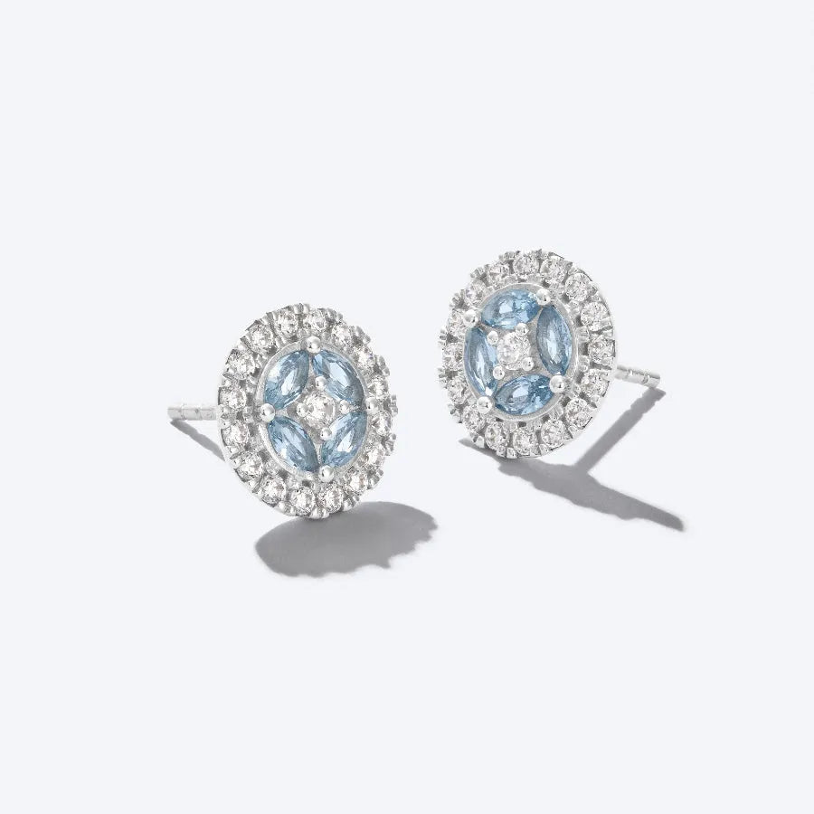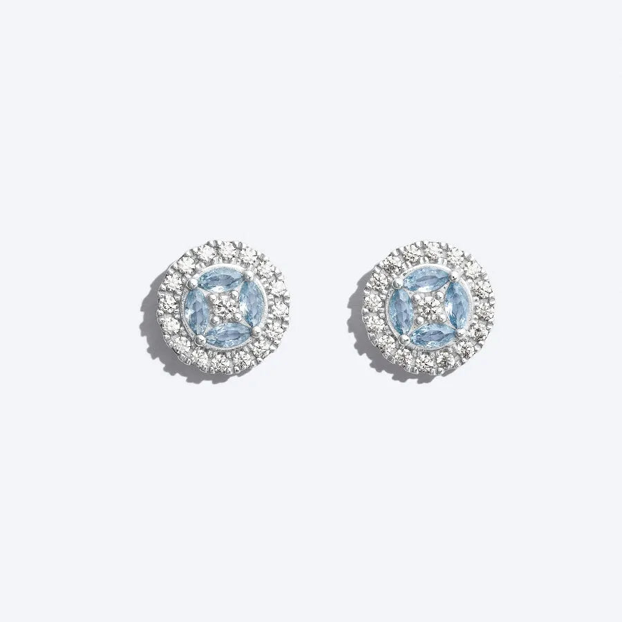For those who love a splash of color, this version of the Éclat Earrings features marquise cut lab-grown aquamarine stones, along with the round cut zirconia stones surrounding them.