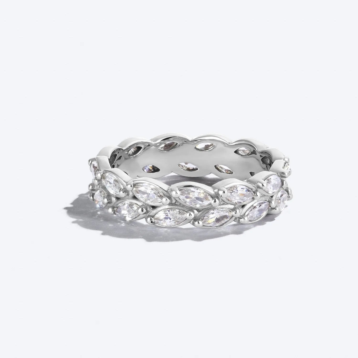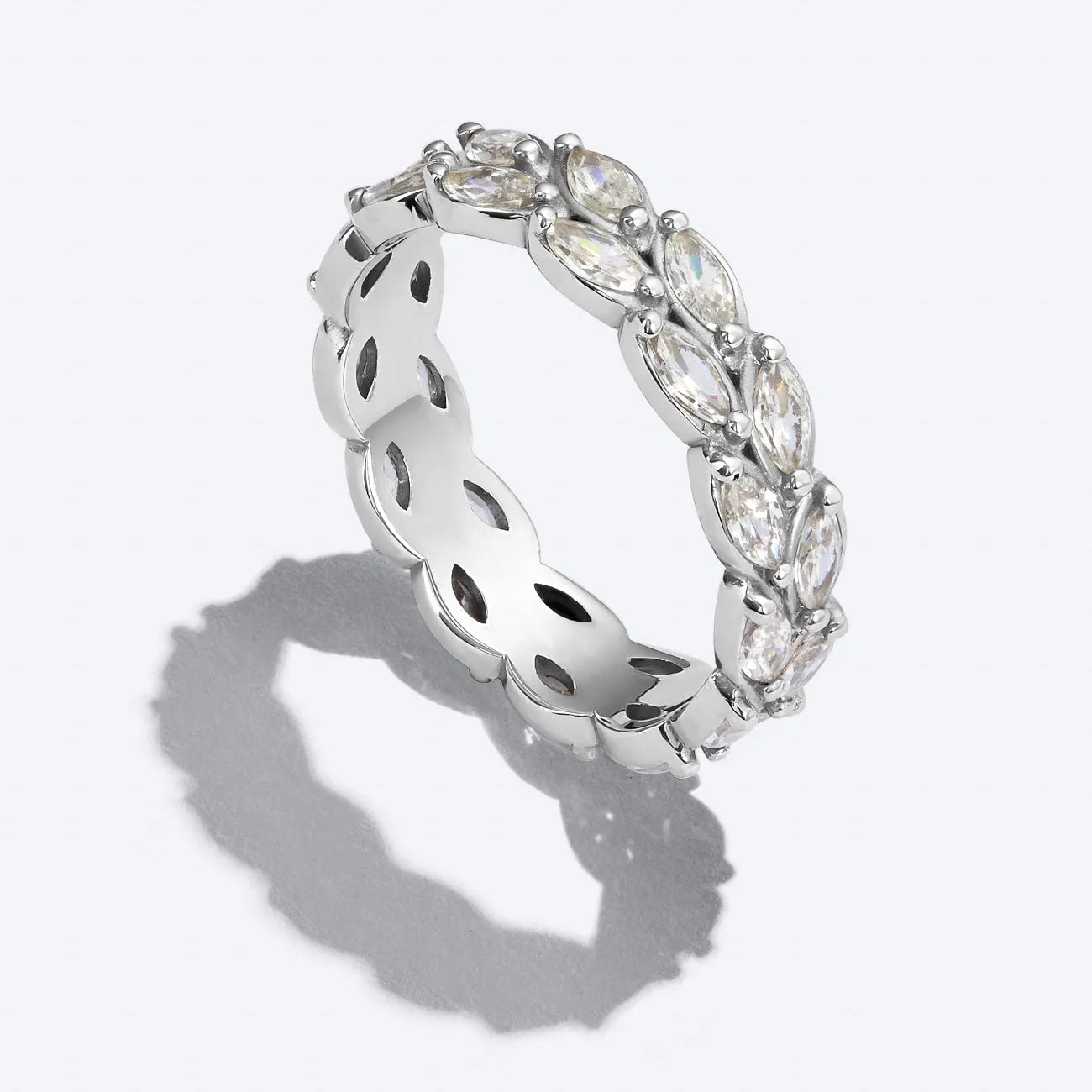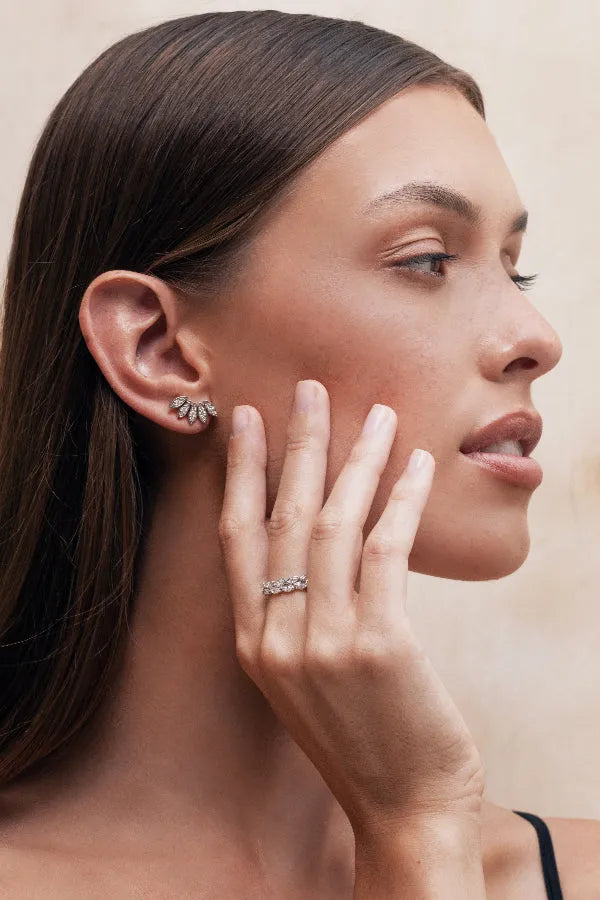 The Freya Ring captures timeless elegance with nature-inspired grace. Crafted from polished sterling silver with a rhodium plating finish for more brilliance, this band features marquise-cut zirconia stones artfully arranged to form delicate leaves encircling the ring, catching light with every movement. Its sleek, comfortable design makes it ideal for daily wear or special occasions, offering a refined accent that blends understated beauty with enduring charm.