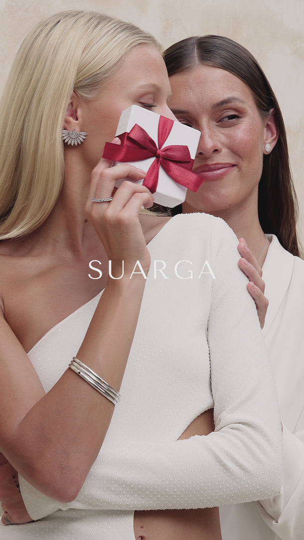 At Suarga, the true value of our silver collection lies in its foundation: Solid 925 Sterling Silver. This is a precious metal of substance and purity, composed of 92.5% pure silver, providing the strength, weight, and hypoallergenic quality that fine jewelry demands.